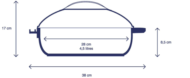 Poignées détachables / Couvercle avec système d’auto-arrosage des viandes / Poignée froide sur le dessus du couvercle Tous feux, même au four / Passe au lave-vaisselle